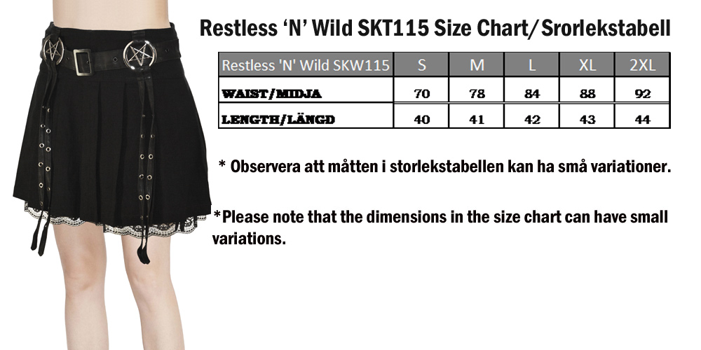 Enchantress pentagram skirt er en super sød nederdel fra Restless 'N' Wild. Strækbart stof med vegansk bælte. To dekorative pentagrammer med hængestropper foran og to bagpå. Lynlås bagpå med hængende pentagram og blonder under nederdelen.