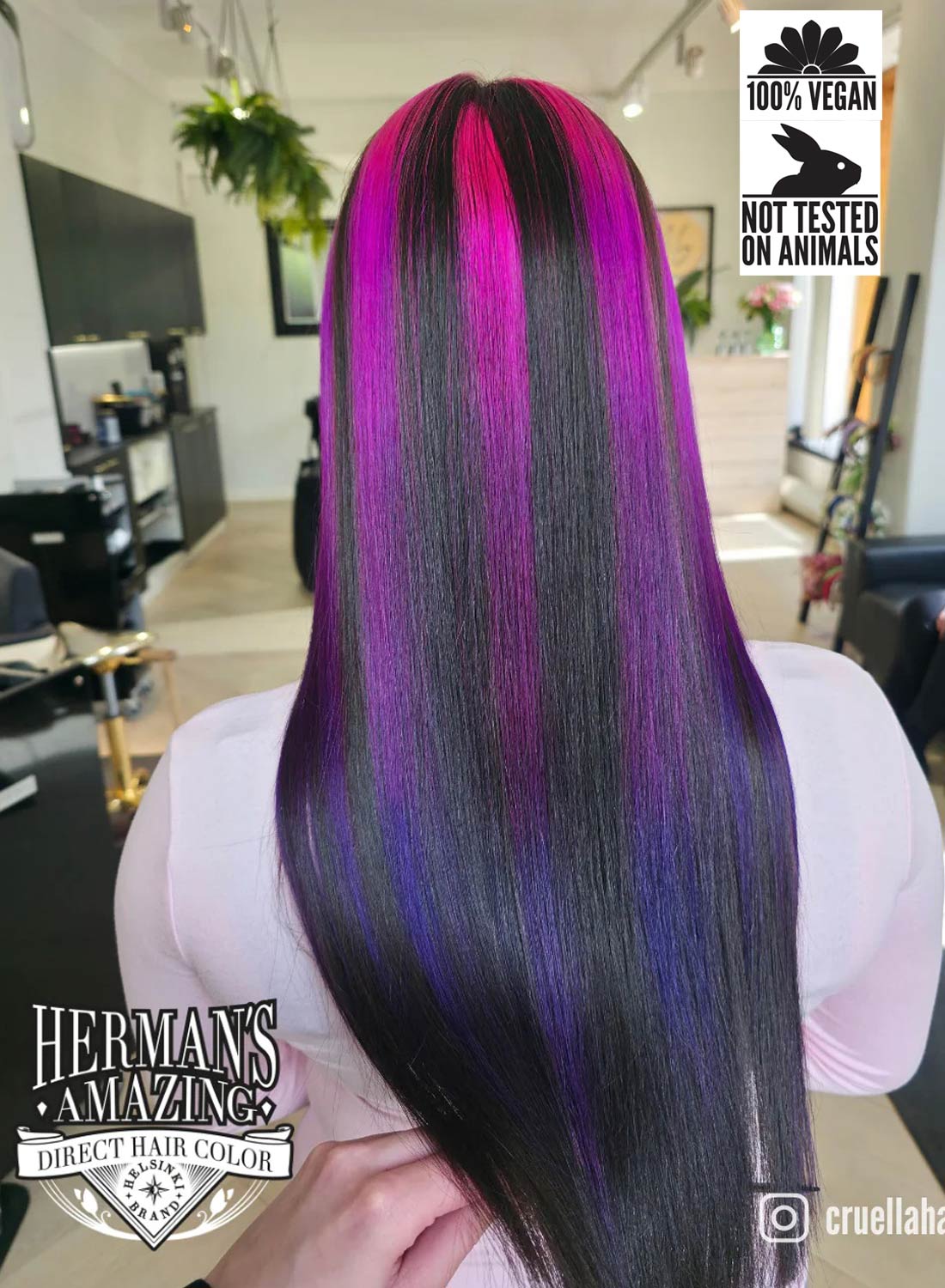 Hermans fantastiske Roxy Beet-hårfarve er en semi-permanent hårtoning, som giver en lilla farve.