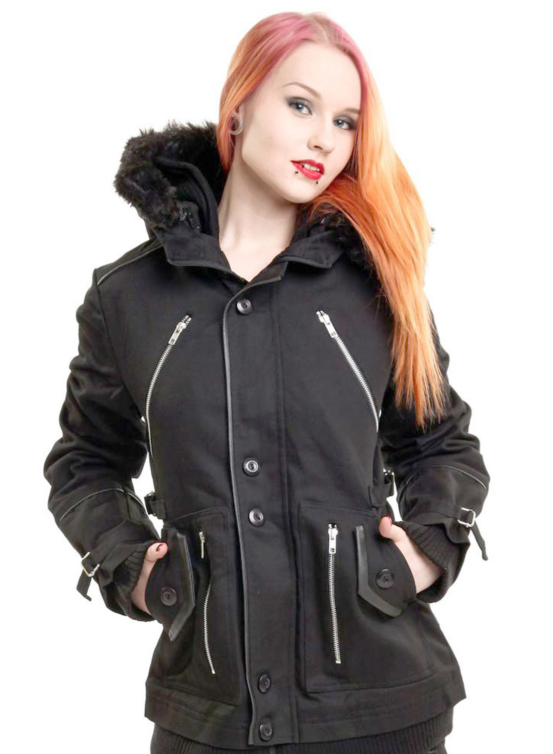 En helt igennem skøn jakke til den svenske vinter som passer perfekt i en rocker- eller gothgarderobe, til hverdags brug.
