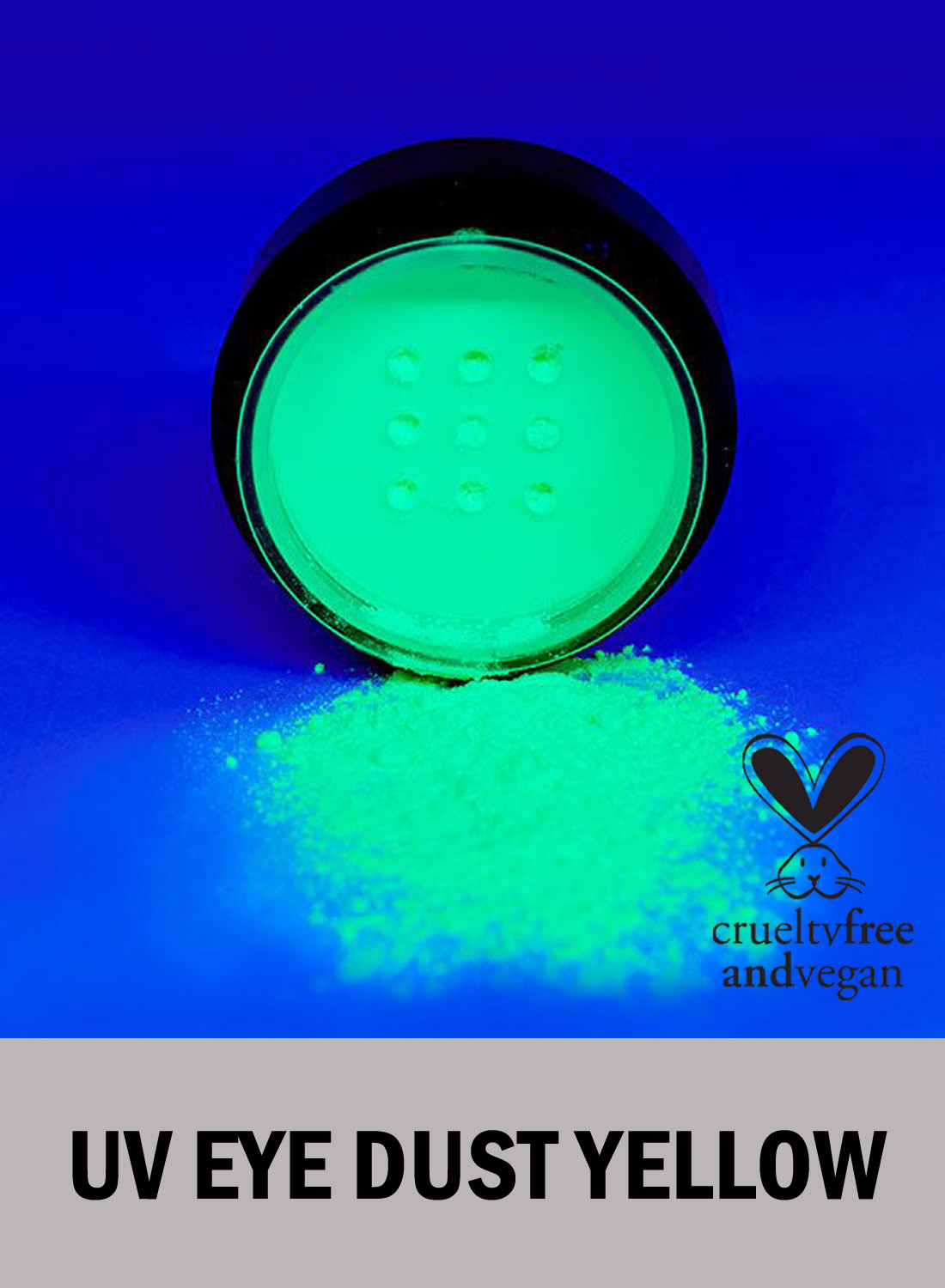 Hyperpigmenteret løs øjenskyggepulver Neonpigmenterne reagerer og gløder under UV-lys for at fluorescere med klar farve. Neonlyset er meget karakteristisk og vil få dig til at skille dig ud på klubben eller festivalen. De stærke pigmentfarver kan bruges til at farve, fremhæve og lysne øjnene med dristige rige farver.