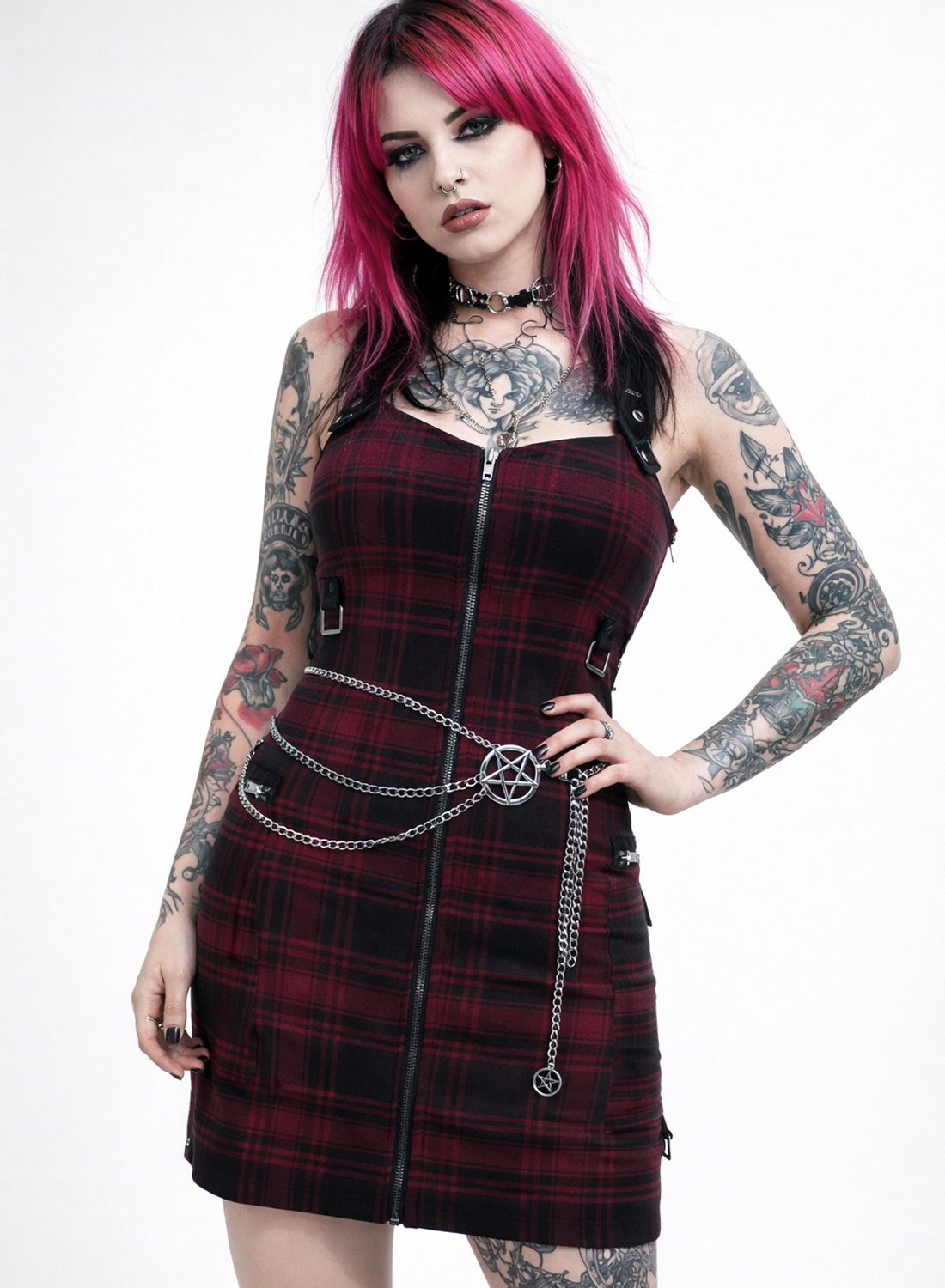 Bæltet passer perfekt over kjoler, nederdele eller høj talje og fungerer både som et statement smykke og et taljebælte. Den robuste metalkæde giver et varigt indtryk, mens den forstærker et mørk mode æstetik inspireret af goth, rock og alternativ streetwear.